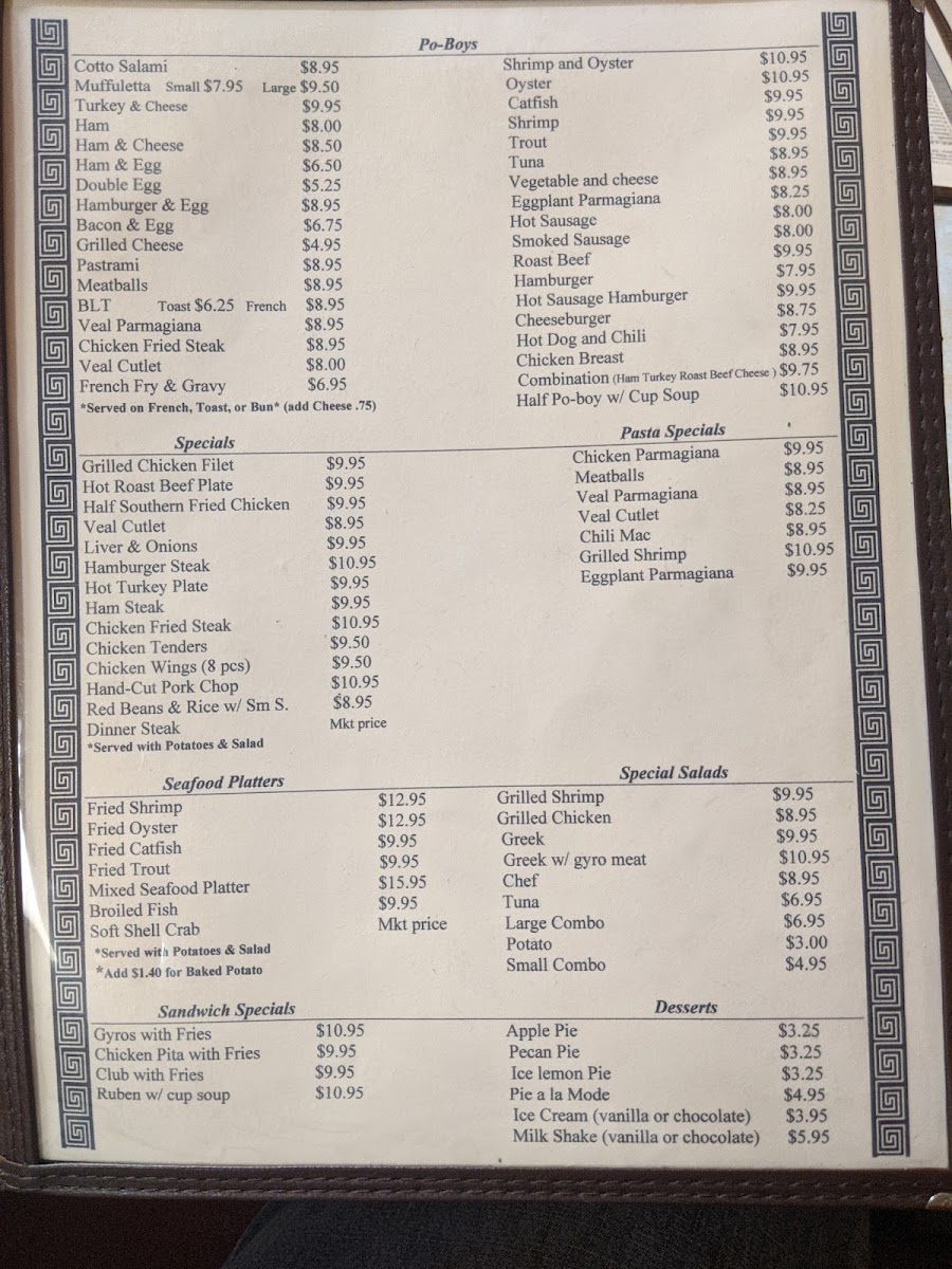 “ Typical dive restaurant in St Charles, on a lark I gave it a try. Did the half sandwich combination and cup of gumbo as a first-time vistor to gage the kitchen staff. Was surprisingly impressed seafood gumbo was good, despite the thin look and had great flavor. For a half sandwich seemed to duplicate itself between the kitchen and service counter, and was awesome. Recommended for a good ole Nola staple meal. Sweet tea was good and lemon for my beverage. Counter service was a little slow at checkout, and the bad orange hair dye did nothing but play on her phone, causing the holdup. This was the only pitfall for a surprisingly great lunch. I will return, even with the dated atmosphere and all. ”